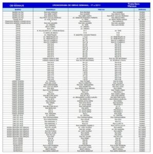 Confira o cronograma de obras de 17 a 22.11: