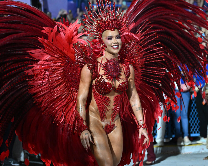 UOL/FOLHAPRESS Juliana Paes, 46, voltou à Viradouro 17 anos após deixar o posto de rainha de bateria. A atriz desfila nesta madrugada na Sapucaí, no
