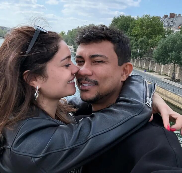 A cantora Iza, de 35 anos, assumiu o relacionamento com o ator João Vitor Silva, de 29. Os dois posaram para fotos aos beijos em