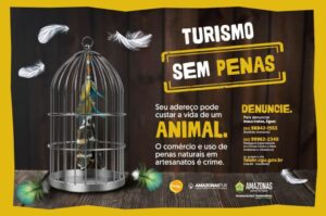 Com a proximidade do 58º Festival de Parintins, o Governo do Amazonas, por meio da Empresa Estadual de Turismo do Amazonas (Amazonastur) e da Secretaria Executiva do Trabalho e Empreendedorismo (Setemp), reforça a campanha “Turismo sem Penas”, que orienta visitantes sobre os cuidados na hora de adquirir acessórios e peças de artesanato. A iniciativa segue as diretrizes da ação “Não tire as penas da vida”, promovida pelo Instituto Brasileiro do Meio Ambiente e dos Recursos Naturais Renováveis (Ibama), e visa prevenir e combater o comércio ilícito de produtos feitos com partes de animais silvestres.
