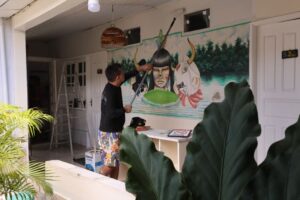 “Aqui na cidade, muitas lojas fecham cedo para o almoço, principalmente por causa do calor. Aí tive a ideia de facilitar para os hóspedes, com esse espaço, para que eles possam levar alguma lembrança de Parintins. Nessa rua também passam muitos turistas, então a loja fica sempre aberta para todos”, disse a proprietária Otília Góes.