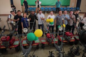 Entre os itens entregues estão 12 motocultivadores (tratotrito) de 6,5 CV, 50 motores estacionários de 5,5 HP, 60 mangueiras para irrigação, 16 caixas de isopor de 170 litros, 10 fornos de 72 polegadas, além da emissão de certificado digital para associação do setor primário, permitindo acesso a políticas públicas e programas institucionais.