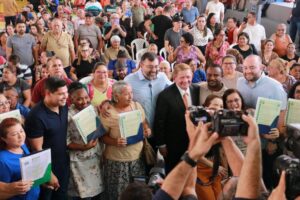 “Nós não estamos entregando apenas papel, nós estamos abrindo portas, estamos dando segurança jurídica, pavimentando um caminho seguro para essas pessoas. A partir de agora, vocês podem fazer a reforma da casa, ir ao banco para fazer um financiamento, porque agora vocês têm um título que comprova de fato e de direito a posse dessa residência, terreno e dessa propriedade”, afirmou o governador Wilson Lima.