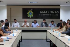 O governador Wilson Lima se reuniu, nesta quarta-feira (23), com agricultores familiares de oito municípios do sul do Amazonas, em mais uma ação que integra o plano de regularização ambiental e fundiária na região. O encontro ocorreu na sede do Governo e teve como pauta principal o apoio aos produtores que buscam desenvolver suas atividades dentro da legalidade, com segurança jurídica e acesso a crédito.