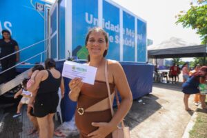A dona de casa Talita Carla Pinheiro, de 31 anos, grávida de cinco meses, realizou ultrassom na Carreta da Saúde e aprovou o atendimento. “Foi ótimo e bem mais rápido. Cheguei às oito e consegui consulta com o clínico geral, ganhei peixe e fiz ultrassom. Essas ações são muito boas pra comunidade, parabéns ao Governo pela iniciativa”, disse.
