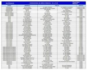 Confira o cronograma de obras de 22 a 27 de setembro: