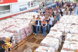 O governador Wilson Lima realizou, neste sábado (13), a entrega de 2 mil cestas de alimentos, cerca de 18 toneladas de produtos essenciais, para a população do município de Anamã (a 165 quilômetros de Manaus). Durante as ações, que integram a Operação Cheia 2025, o governador visitou casas do município e entregou pessoalmente a ajuda humanitária para famílias afetadas pela enchente do rio Solimões.