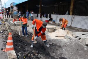 As intervenções já podem ser vistas na avenida Lourenço da Silva Braga, próxima à feira da Banana, onde foi realizada a recuperação de 25 metros da calçada, espaço diário de passagem de feirantes e pedestres. O feirante Antônio Inácio, que atua na área há mais de 12 anos, aprovou o serviço. “Esse trabalho é muito importante para a cidade, vai deixar tudo mais bonito e organizado”, comentou.