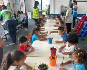 Durante a ação, os pequenos participaram de dinâmicas, brincadeiras e jogos educativos, que transformaram o aprendizado em um momento de interação e consciência cidadã.