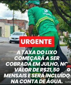 A Prefeitura de Manaus, por meio da Secretaria Municipal de Finanças e Tecnologia da Informação (Semef), informa que a mensagem que circula nas redes sociais sobre a suposta cobrança de uma “taxa de lixo”, no valor de R$ 21,50, a partir de julho, é falsa. É importante esclarecer que o município de Manaus não cobra a taxa de lixo, e não há qualquer previsão para a implementação legal desse tipo de tributo.