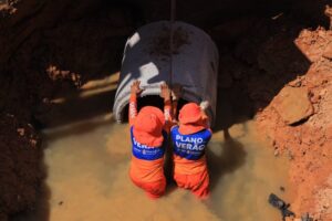 A Prefeitura de Manaus, por meio da Secretaria Municipal de Infraestrutura (Seminf), atuou de forma emergencial, neste sábado, (25), para solucionar uma obstrução na rede de drenagem da rua Ovídio Gomes Monteiro, no bairro Alvorada 3, zona Centro-Oeste. A ocorrência foi provocada pelo grande acúmulo de lixo descartado irregularmente em via pública, o que comprometeu a vazão das águas pluviais do igarapé da região e abriu uma cratera a cerca de cinco metros de profundidade do nível da rua.