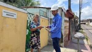 A aposentada Maria do Perpétuo Socorro de Lima mora no Japiim há 55 anos. Durante a visita porta a porta, ela relatou que a chegada do sistema de esgoto traz esperança de uma vida mais saudável. “Moro aqui desde os 14 anos. Hoje, com 69, acompanho a transformação que a Águas de Manaus está fazendo no meu bairro. Ainda quero viver muito tempo e quero ver as ruas limpas, sem água suja na sarjeta. Aqui em casa, uso fossa e, quando ela enche, o cheiro forte incomoda. Quando tudo estiver funcionando, vou me conectar. Acredito que tudo vai mudar e melhorar por aqui com a chegada do esgoto”, afirma.