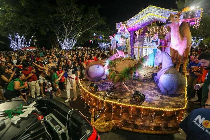 O evento teve a participação dos personagens que integram o espetáculo “Um Sonho de Natal”, realizado pela Nova Igreja Batista (NIB), além de carros alegóricos natalinos, fanfarra, fantoches, patins, dançarinos e diversos personagens.