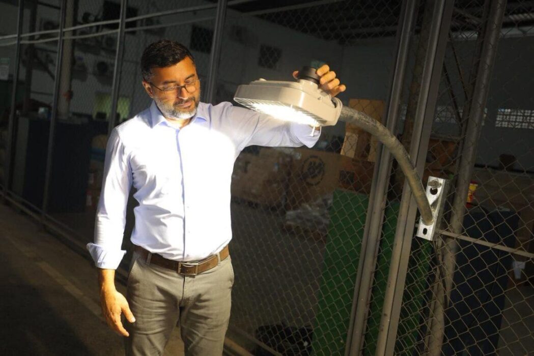 O governador Wilson Lima acompanhou, nesta terça-feira (20), a remessa de mais de 3,4 mil luminárias em LED destinadas à modernização da iluminação pública nos