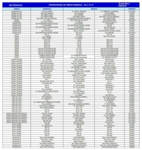 Confira o cronograma das obras entre os dias 08 e 13 de dezembro: