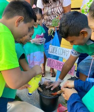 Como parte da programação da Semana do Meio Ambiente, a Unidade Gestora de Projetos Especiais (UGPE) do Governo do Amazonas promoveu atividades educativas com as crianças do residencial Mestre Chico, na zona sul, área de intervenção do Programa Social e Ambiental de Manaus e Interior (Prosamin+). Entre as atividades desenvolvidas, as crianças participaram de plantio de mudas de árvores frutíferas e apresentação musical dos Garis da Alegria, grupo cultural da Secretaria Municipal de Limpeza Pública (Semulsp).
